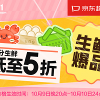 10月9日晚8點,京東11.11正式開啟。活動期間,部分生鮮低至5折,天天都有搶鮮價,為用戶帶來一場又好又便宜的生鮮購物體驗。用戶...